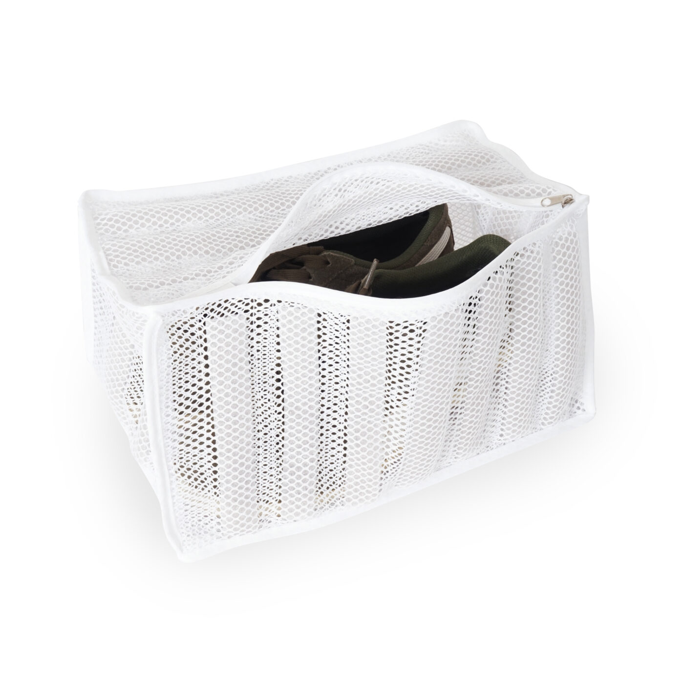 We offer a simple and effective solution – a shoe washing bag. It allows you to safely clean your favorite pair without damaging either the shoes or the drum of the washing machine.