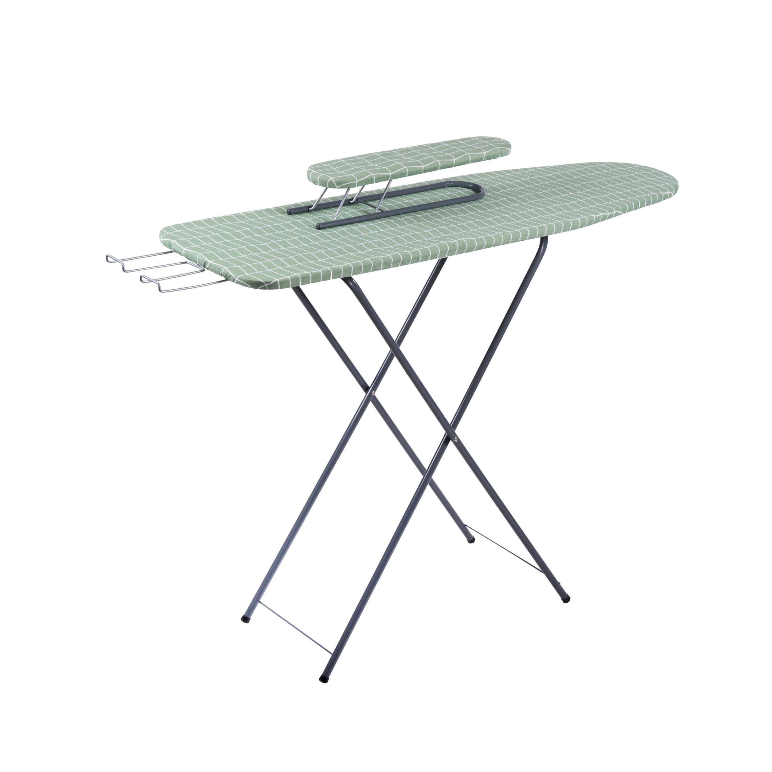 A convenient and compact model that comes with a sleeve board, perfect for small spaces. The board’s base is made of water-resistant chipboard, providing a perfectly smooth surface. The height is adjustable between 79–90 cm for your convenience.