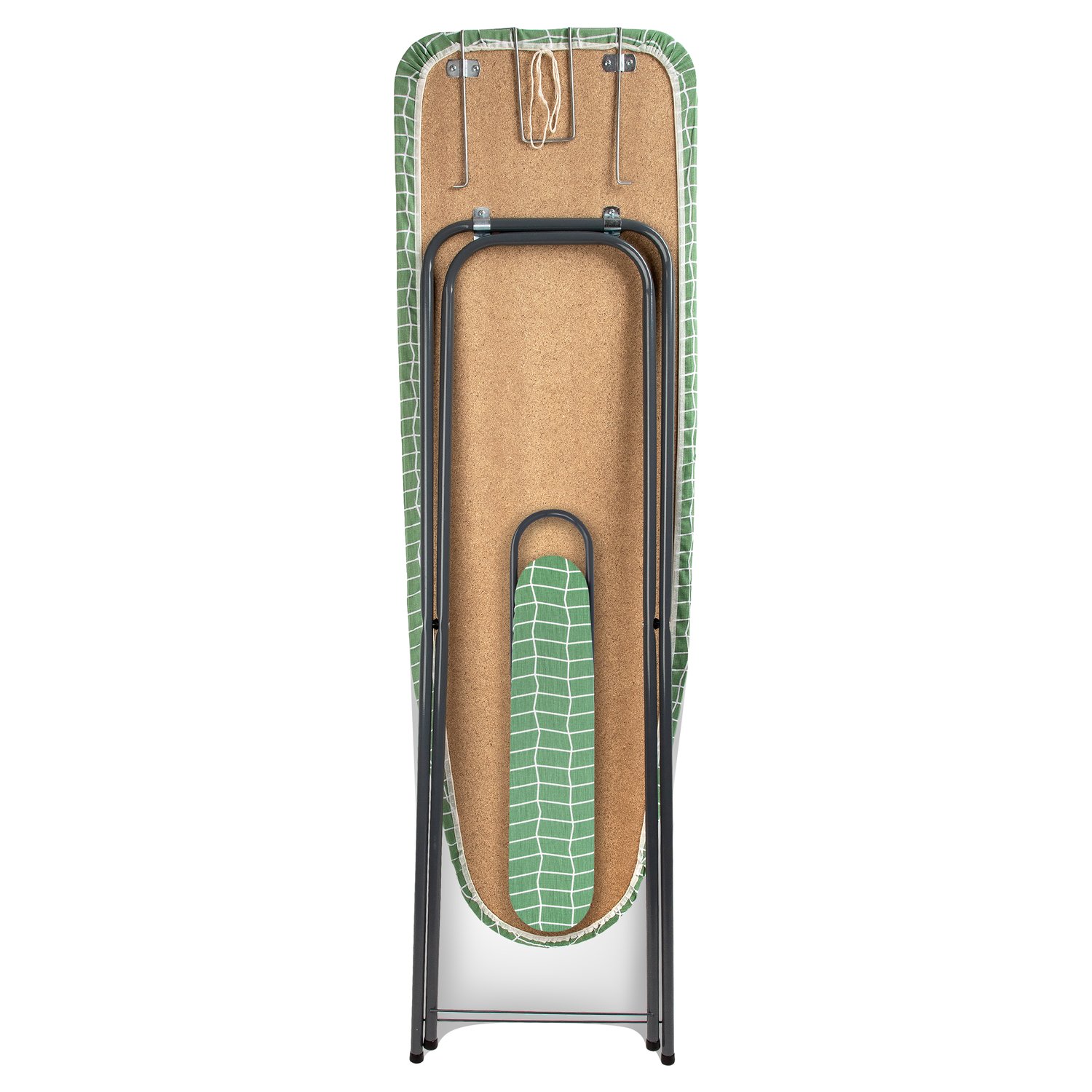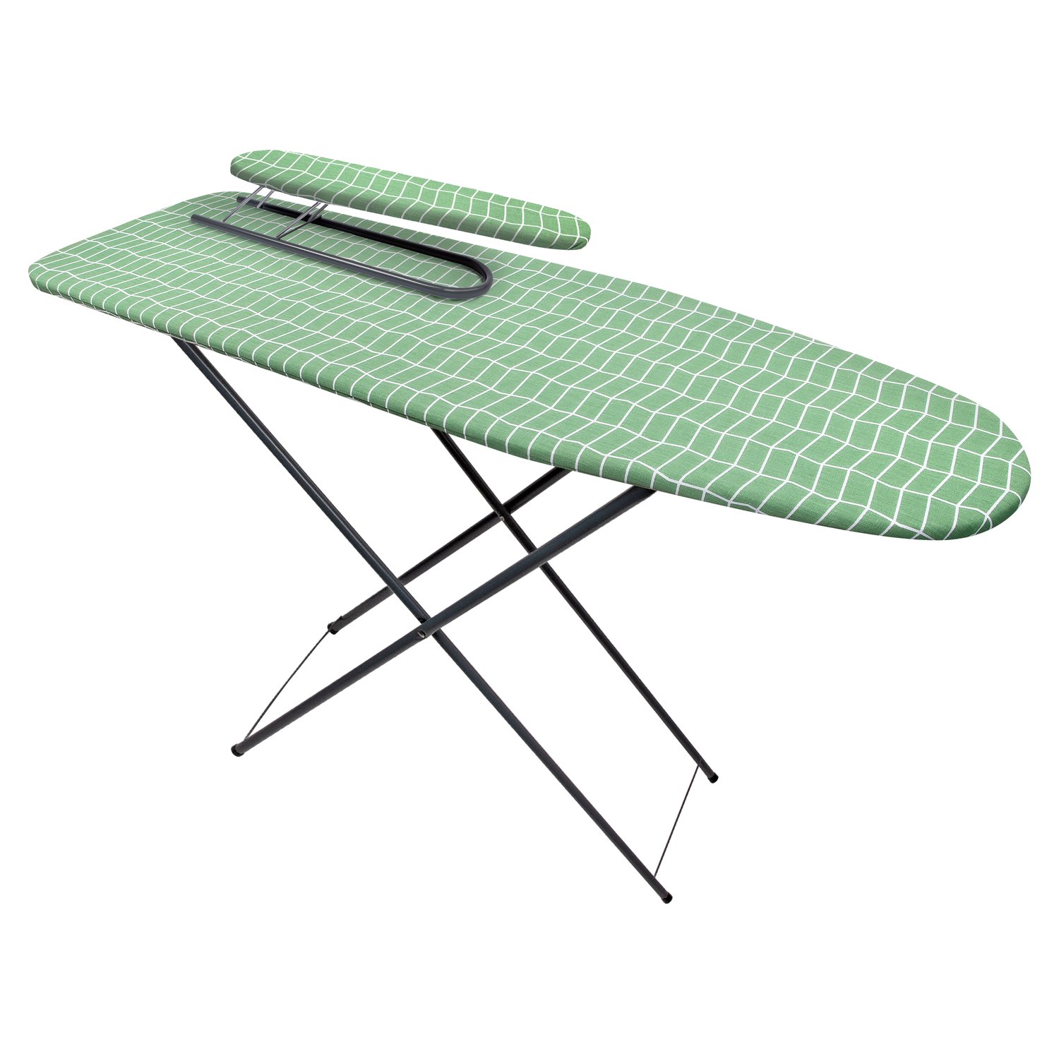 The 100% cotton cover with foam padding is easy to remove and comes in four color options. The board supports loads up to 15 kg and includes a sliding metal tray for the iron.