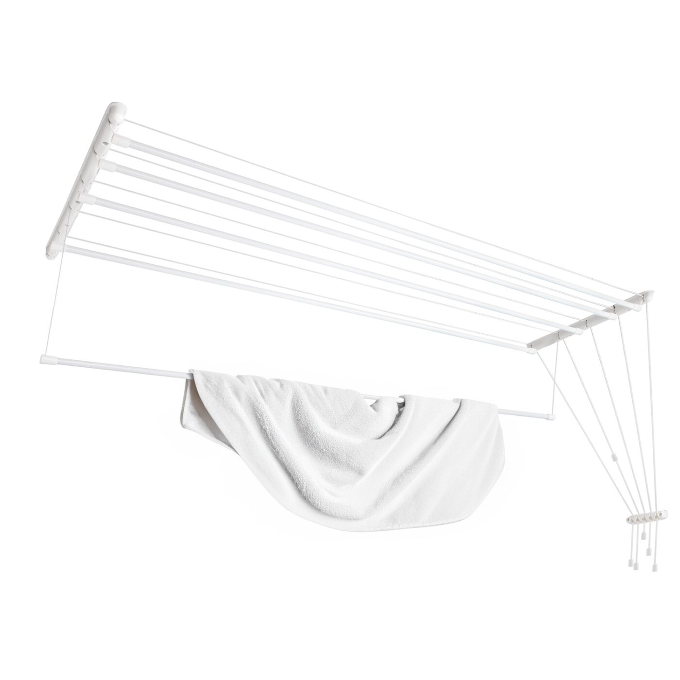 Ceiling dryer – a compact and convenient clothes drying rack. It allows you to quickly and efficiently dry your laundry. The white color of the product fits any interior. The design can be used in the bathroom, on the balcony, or on the loggia.