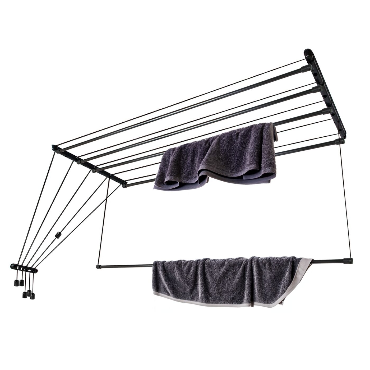 Ceiling dryer – a compact and convenient clothes drying rack. It allows you to quickly and efficiently dry your laundry. The black color of the product fits any interior. The design can be used in the bathroom, on the balcony, or on the loggia.